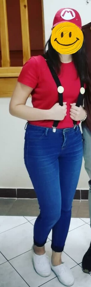 Strój Mario łatwo zrobić, ja kiedyś na szybko zrobiłam. Granatowe spodnie jeansowe, czerwone spodnie i czerwoną czapka na której przykleiłam białe M. Do tego szelki na której przykleiłam z kartki guziki i wymalowalam sobie wąsy.