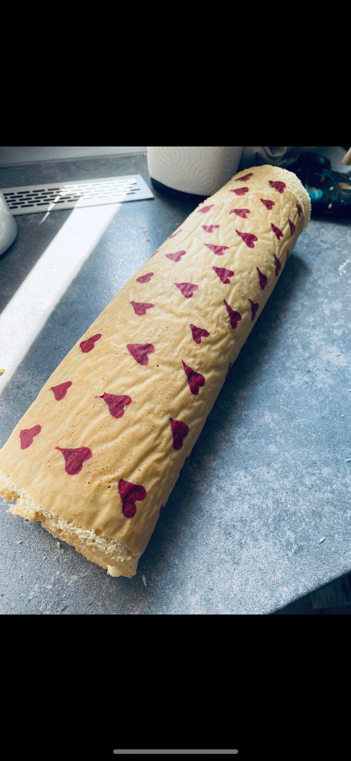 A jeszcze wam zostawię pomysł ostatnio robiłam roladę zwykłą biszkoptową , ale narysowałam serduszka żeby było urocze