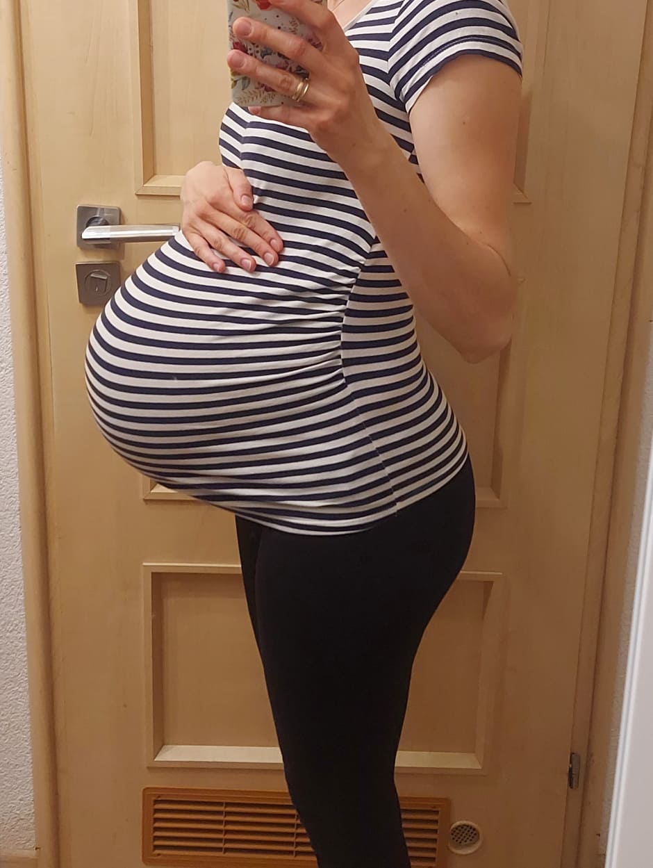 Łał , ale piłeczka. Wlasnie u szczupłych dziewczyn fajnie to wygląda bo widać że drobna jesteś a tu taka piłka z przodu :D