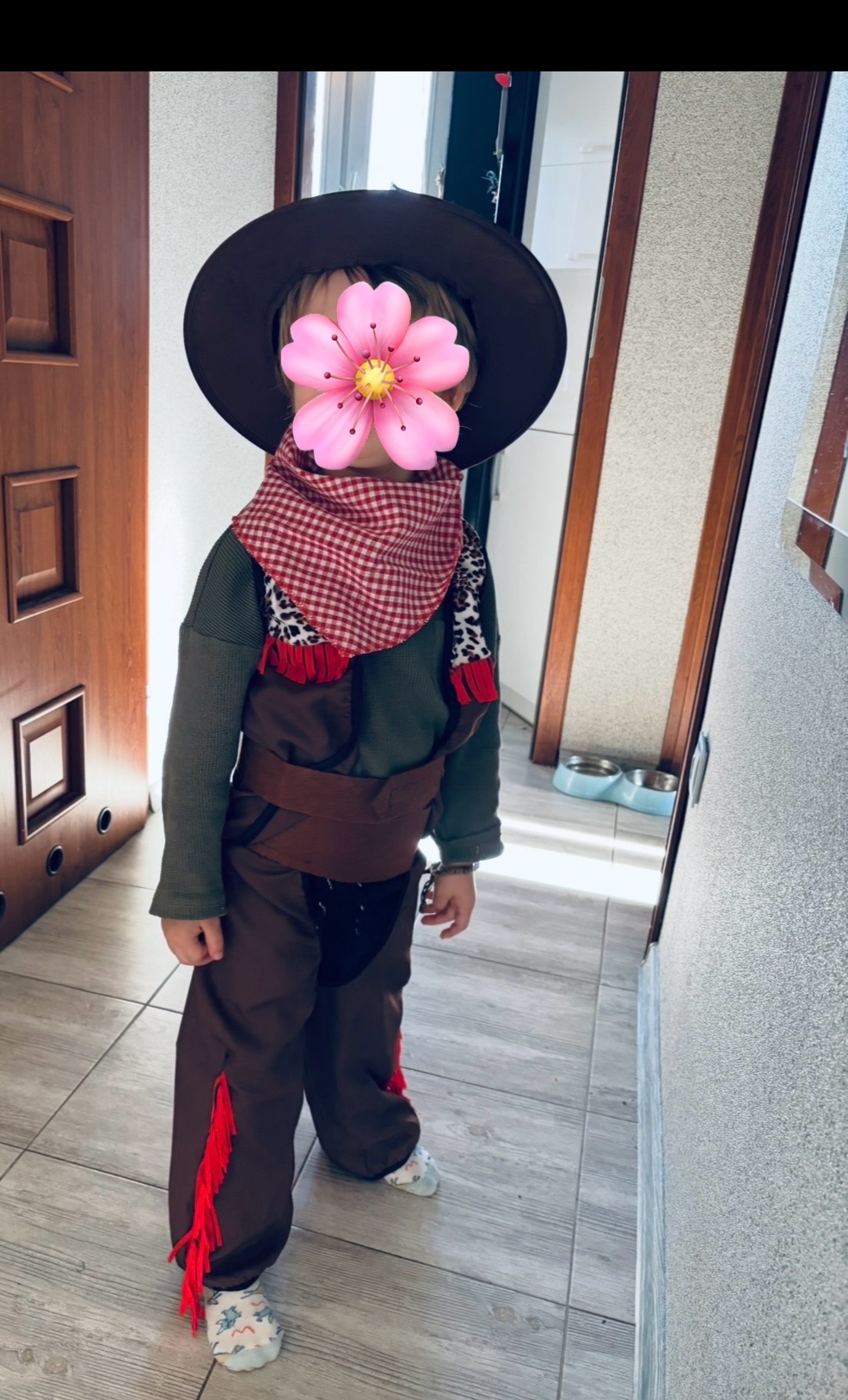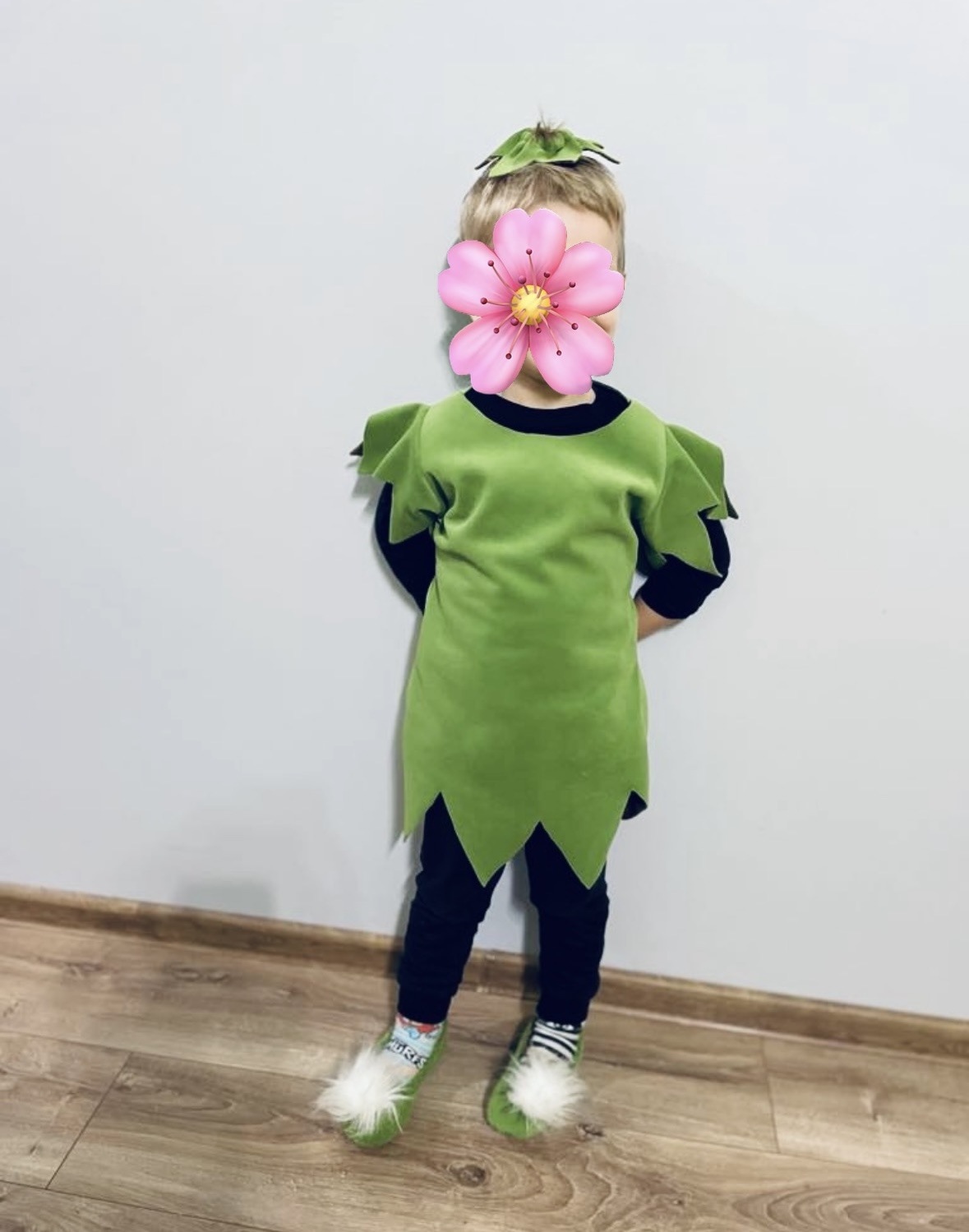 i ubrać malucha w zielony strój i czapeczkę z piórkiem