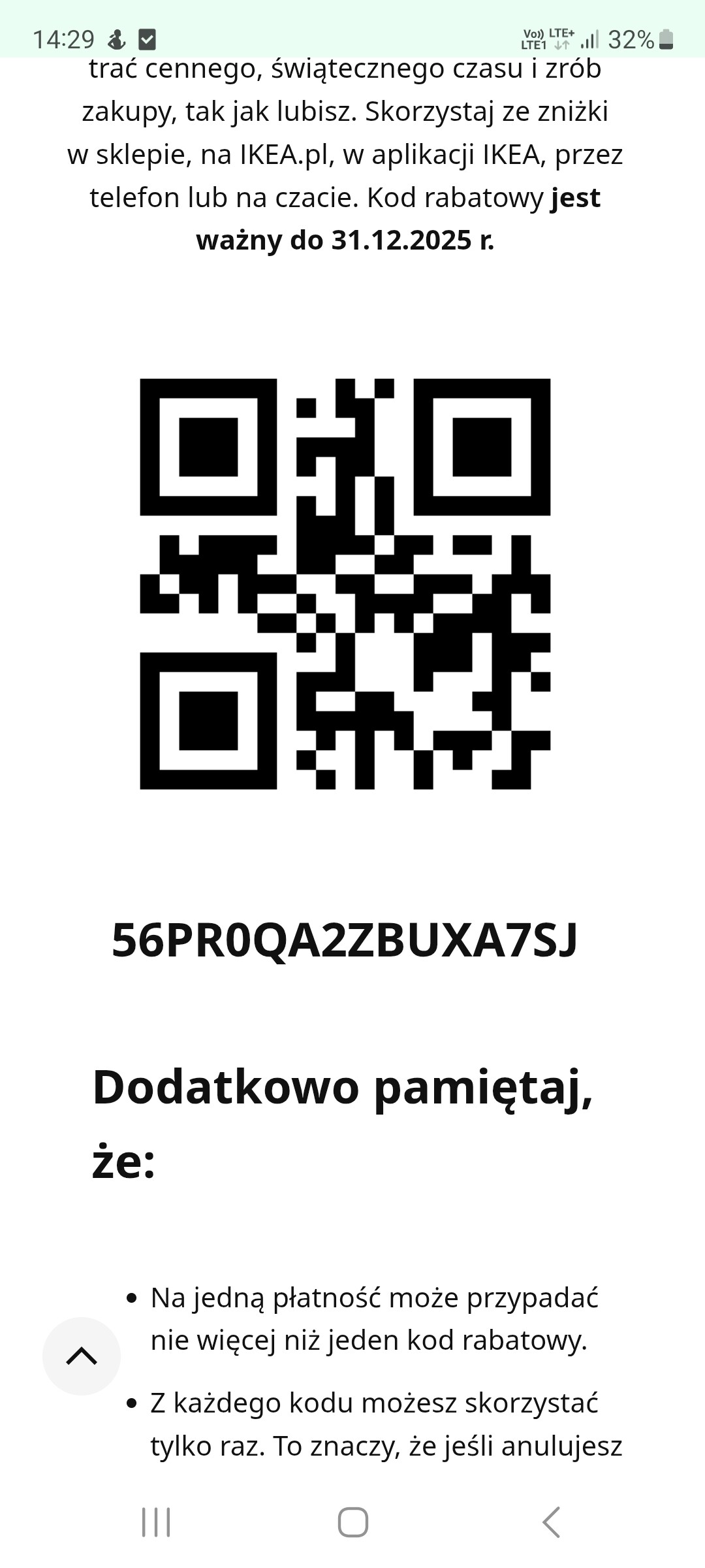 Ja tez zrobilam juz zakupy w ikea z moim kodem. Teraz czekam az maz mi wysle swoj.