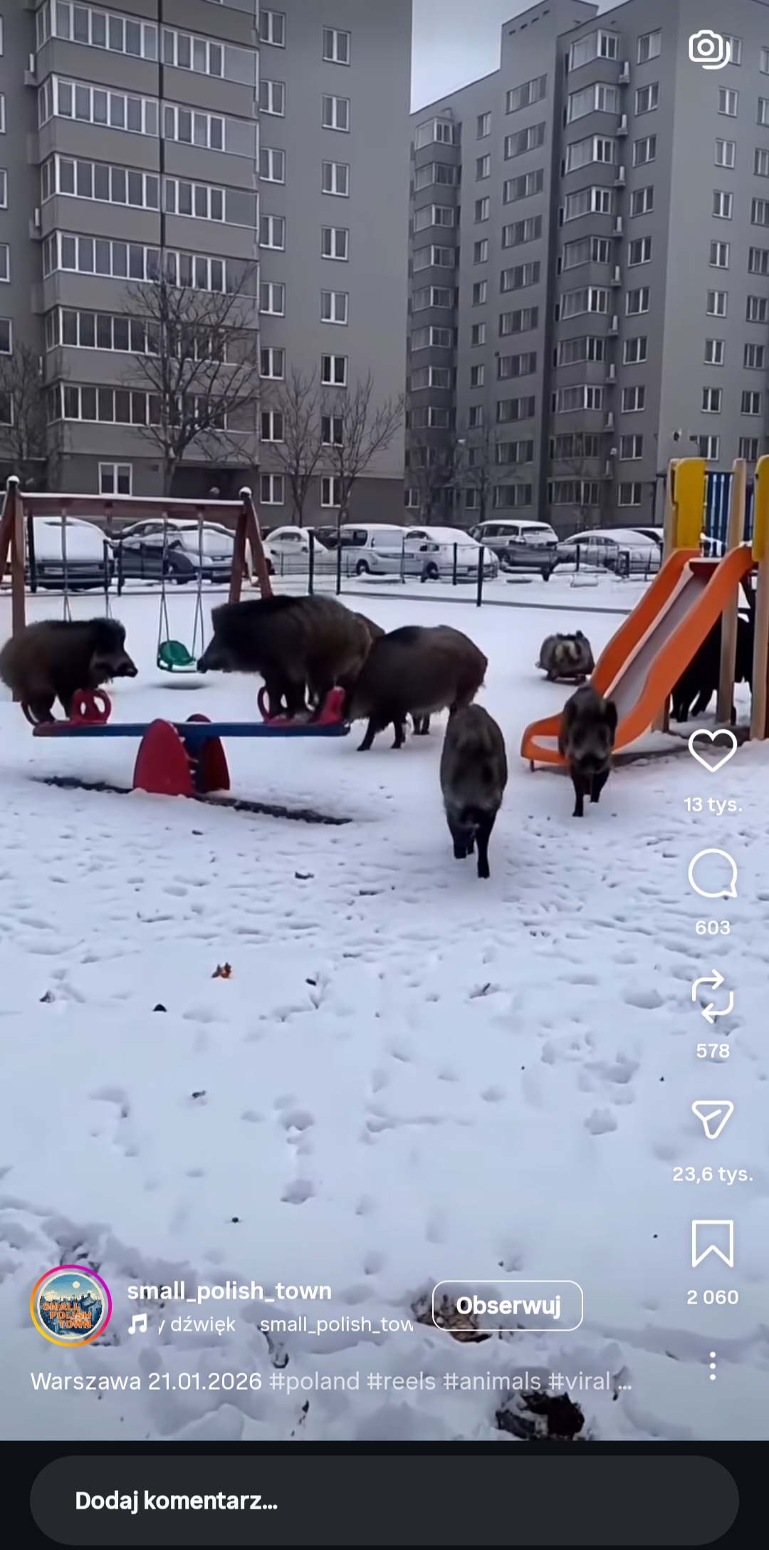 Wiem że coś takiego miało miejsce w Białymstoku. Ja sama mieszkam w takiej okolicy gdzie pojawiają się dziki i to bardzo często przy właśnie placu zabaw