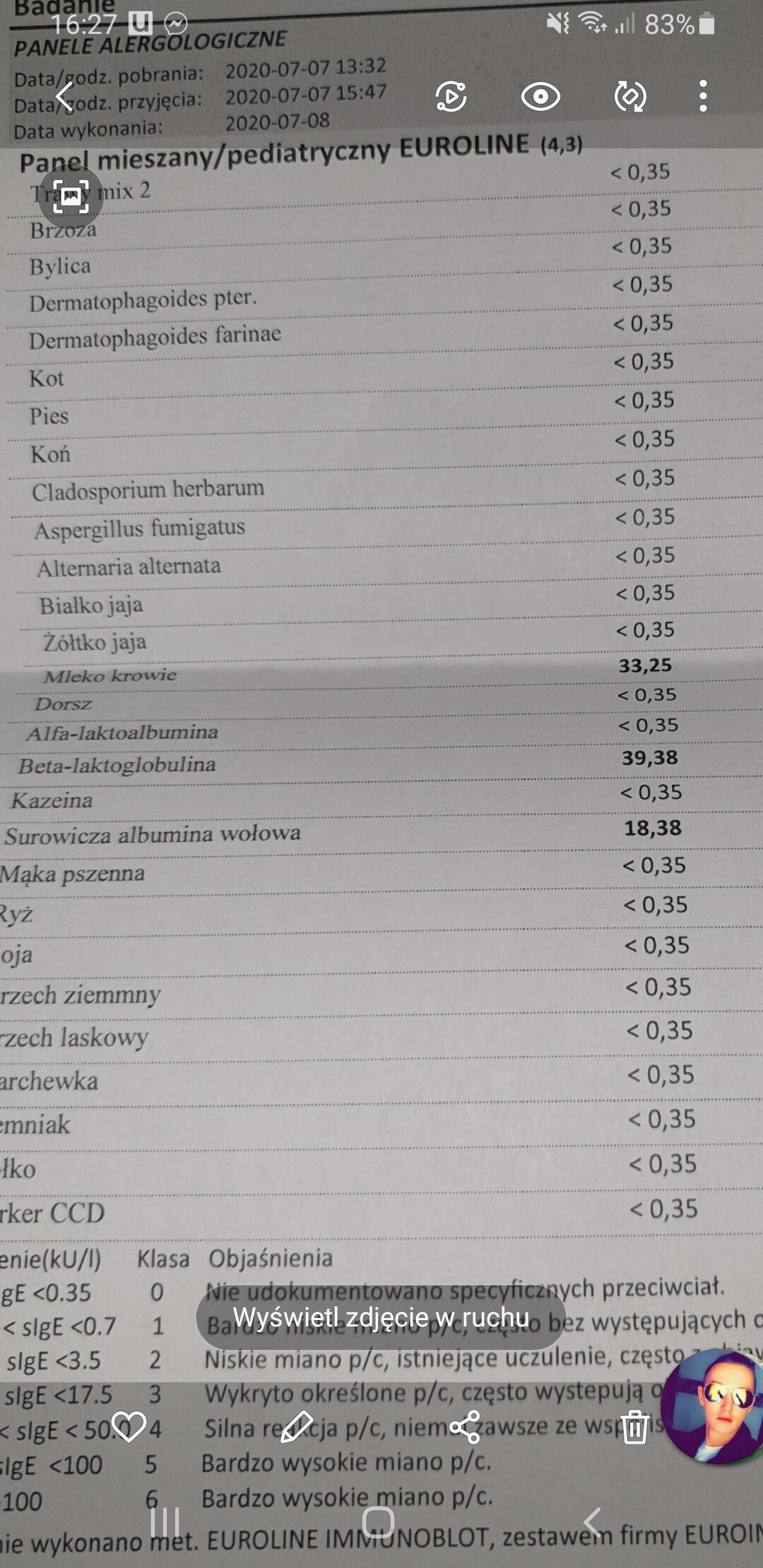 Właśnie wczoraj odebraliśmy wyniki wiec wychodzi na to ze na mleko krowie i chyba mięso wołowe zobaczymy co lekarz powie. Chyba będzie trzeba zrezygnować z piersi karmienia:(:(mam dietę eliminacyjna juz bardzo długo a słodkiego to nie wiem kiedy zjadłam ostatnio:( tam też mleka kakao wszędzie