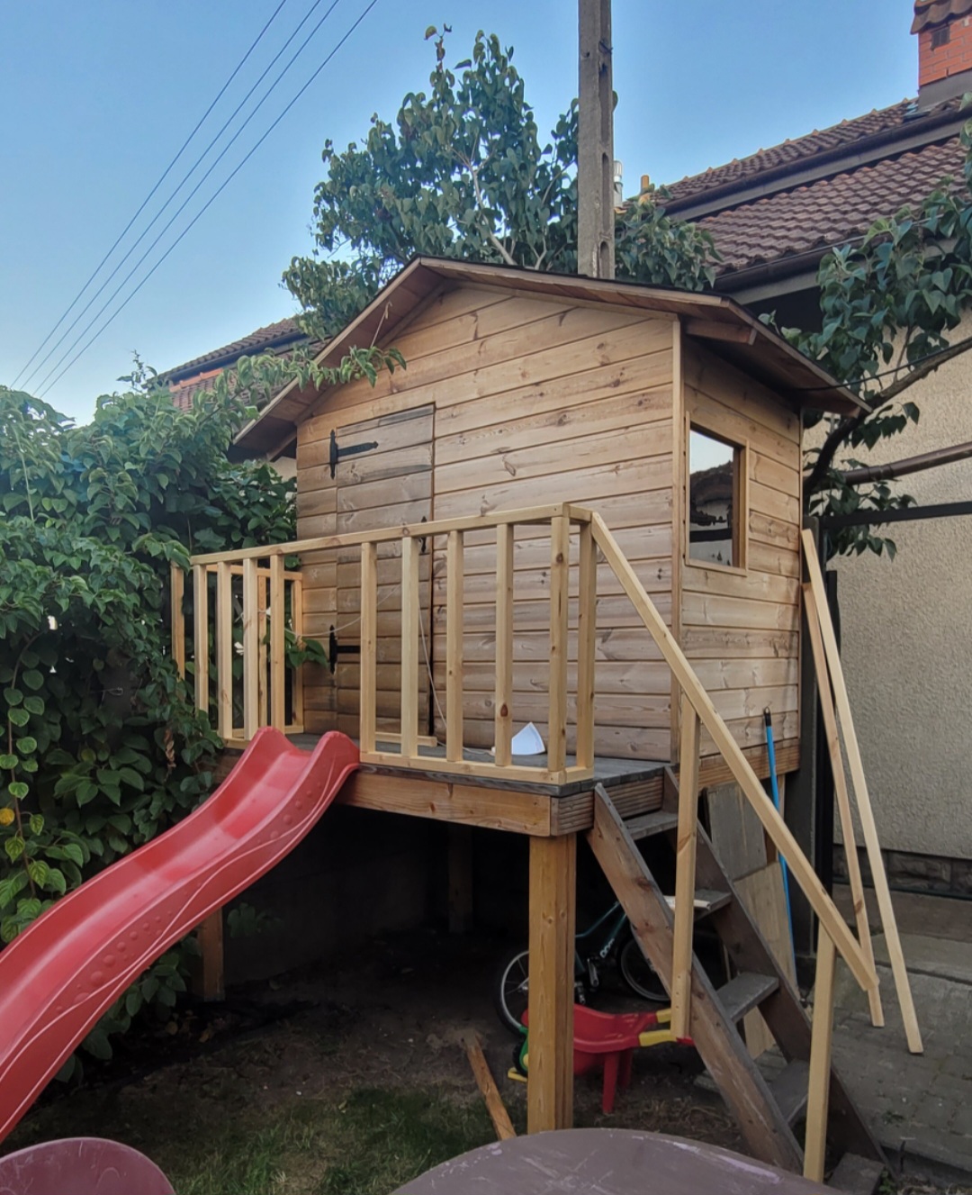 Z reszta moj maz zrobil sam ( z synem) domek drewniany wiec co mu tam machnac taka smietnikowa altanke ![]()