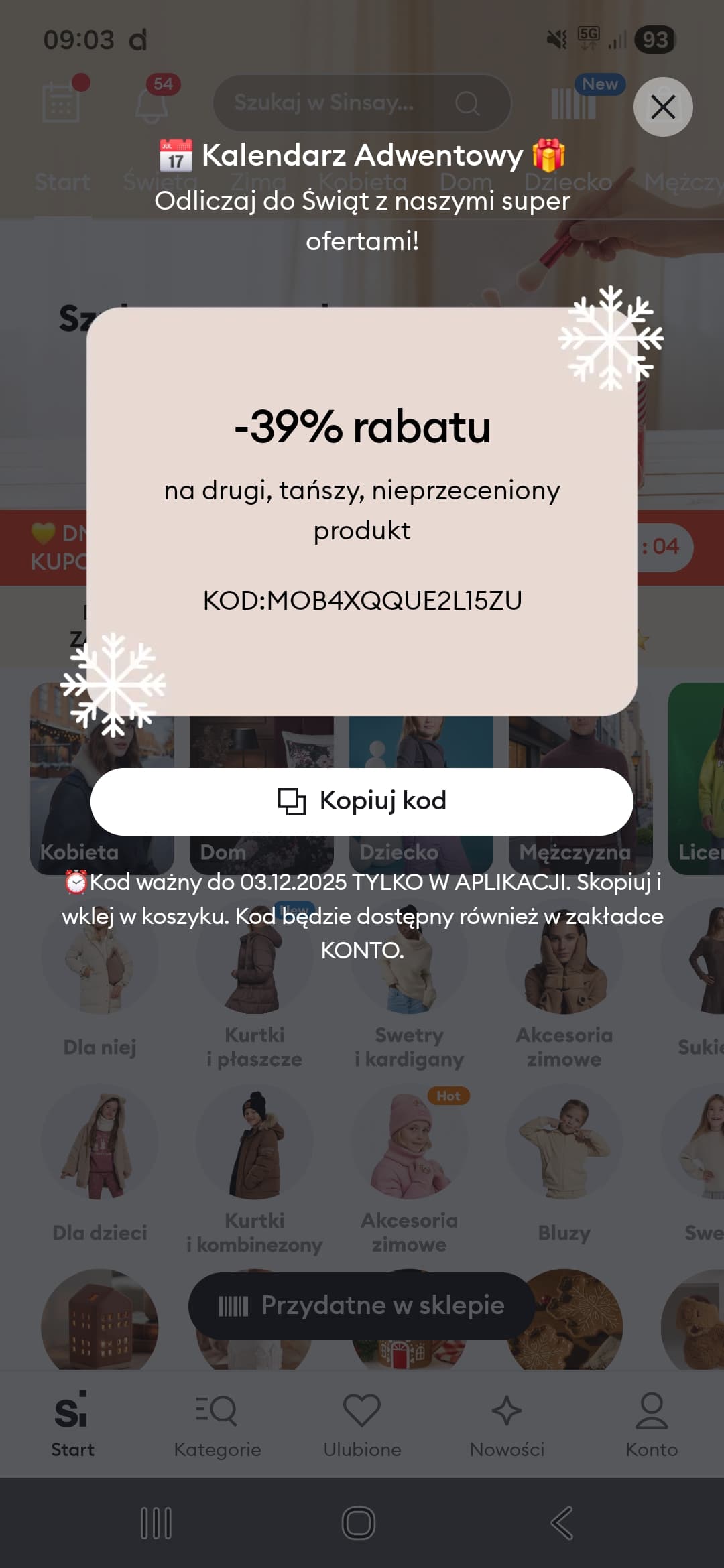 na sinsay tez codziennie inna promocja w ramaxh kalendarza adwentowego