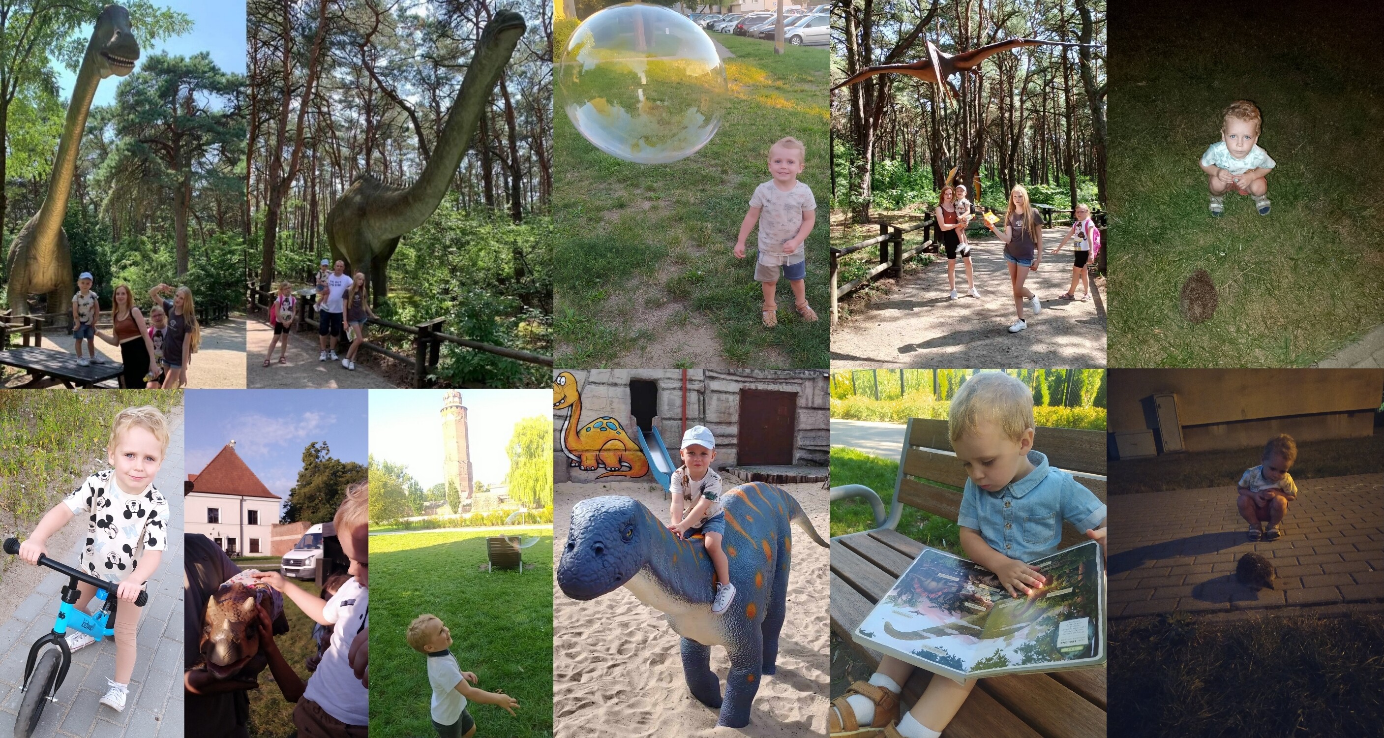 Nasze wakacje spędziliśmy spacerując wśród zieleni. Były wędrówki w poszukiwaniu dinozaurów i bliskie spotkania z nimi. Jzda na roweryku i wspólne rowerowe wycieczki. Były też spacery i zabawa w parku nie mogło zabraknąć baniek mydlanych i czytania książeczek. Było też spotkanie z jeżem.