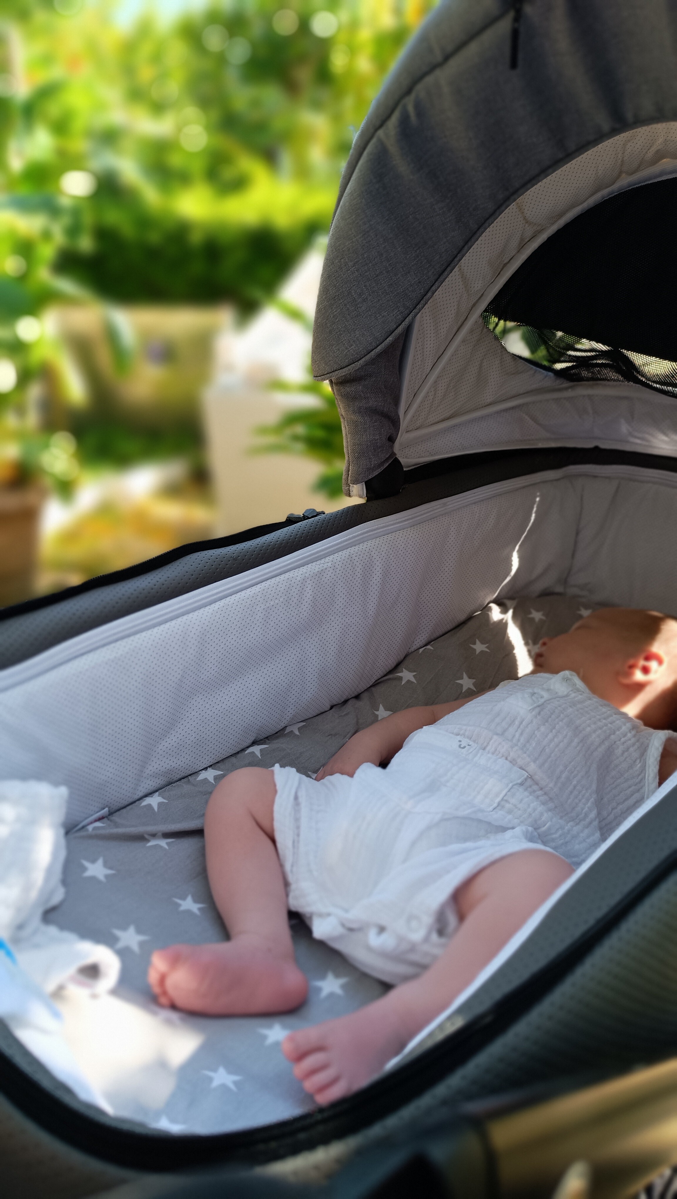 Te upalne wakacje spędziliśmy na spacerach po lesie i parkach, z takim maluszkiem tylko w cieniu.