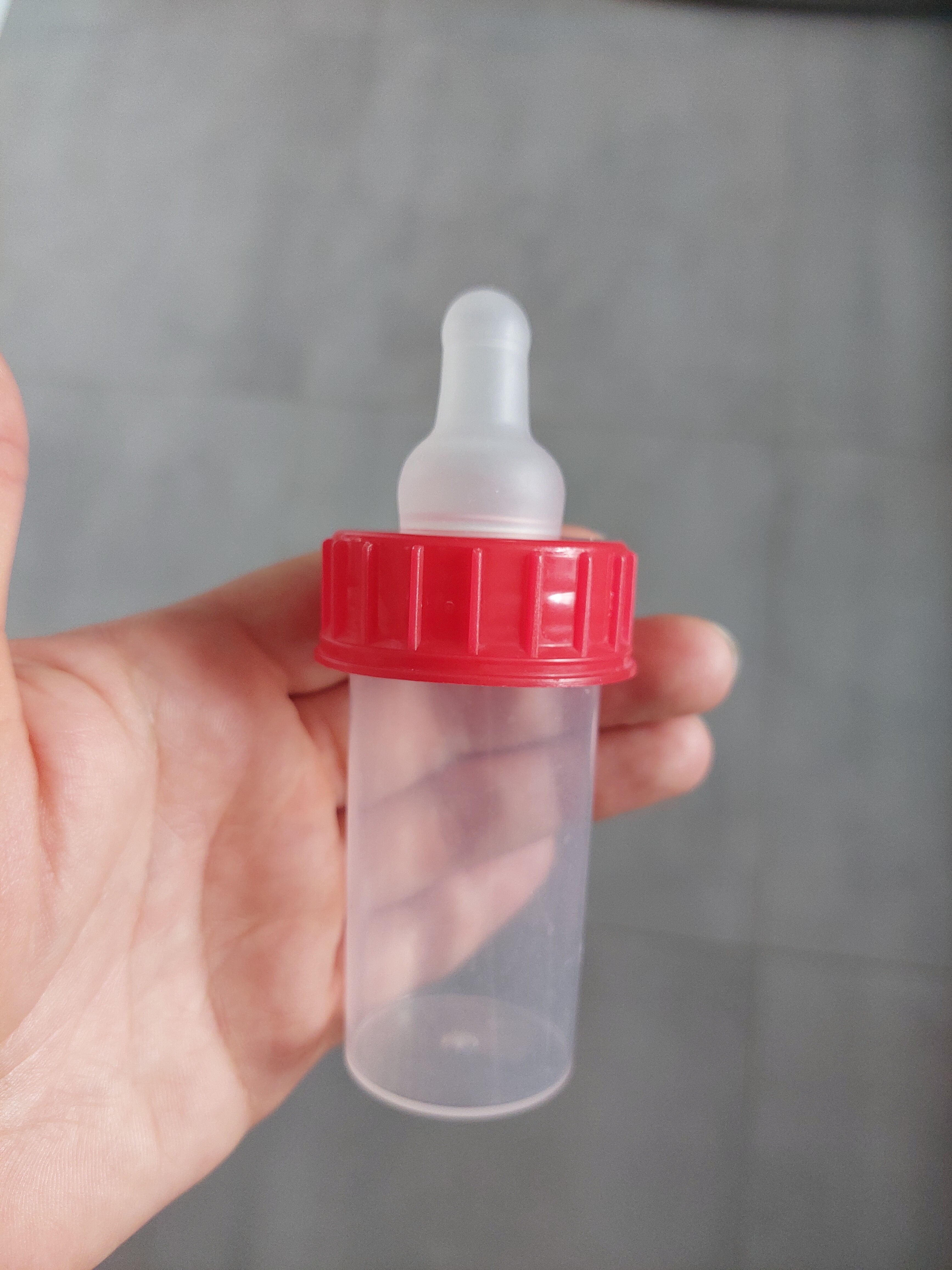 Ja dostałam taki pojemniczek jak miałam dokarmiać dziecko odciągniętym mlekiem w czasie żółtaczki, ale ze zwykłą nakrętka, bez smoczka. Na początek to faktycznie wygodne takie mini buteleczki, bo dziecko też je mini porcje.