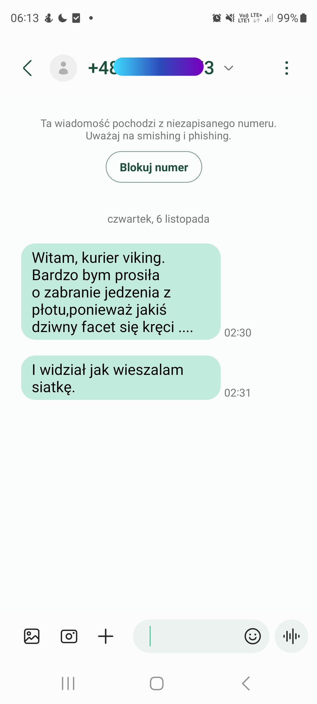 Na szczescie wisialo. Takze nie wzial. Ale no tak czy inaczej dziwne i przerazajace ze nawet kurier napisal sms bo facet wydal sie podejrzany