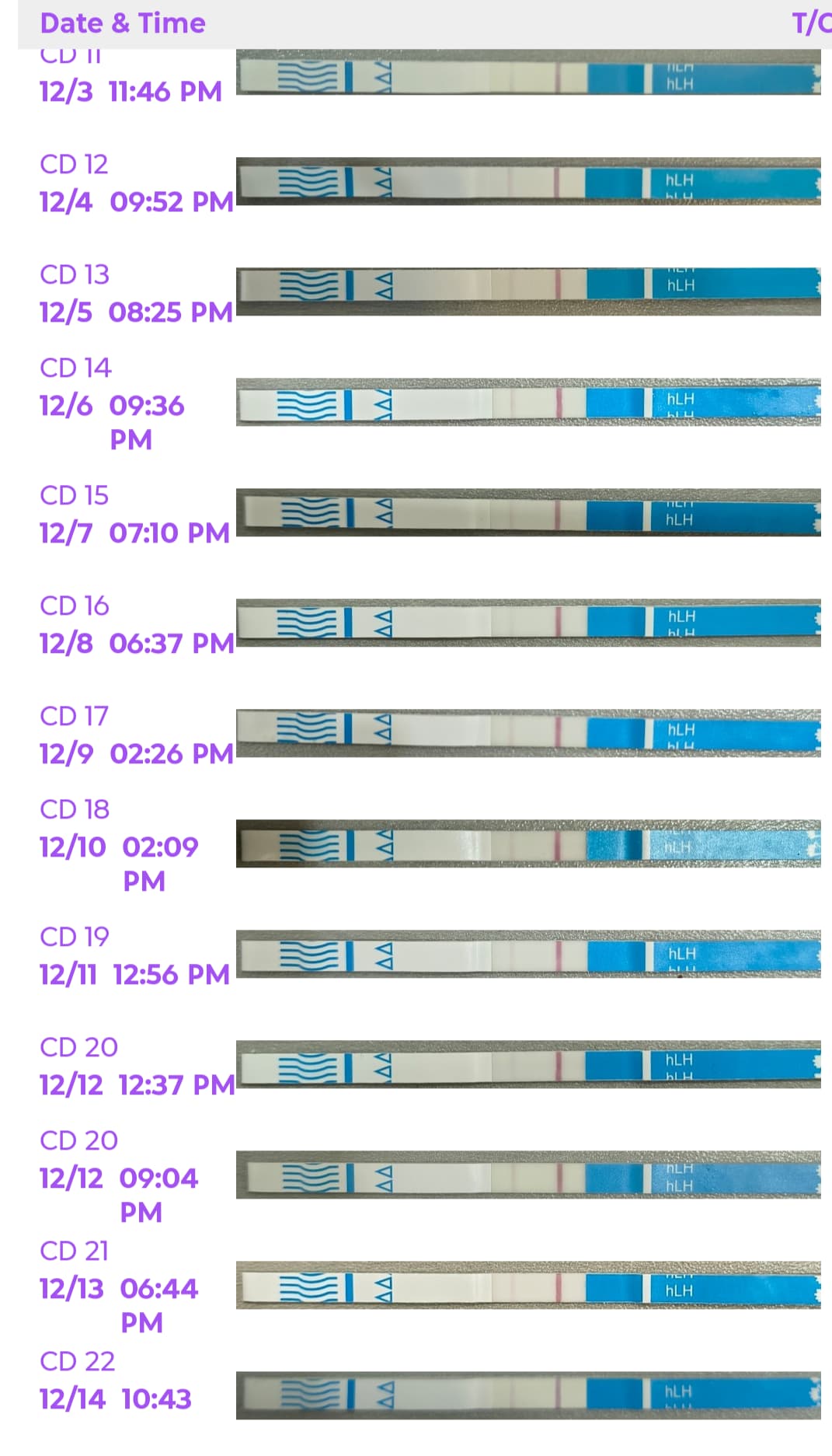 W poprzednim cyklu też żaden test nie był w 100% pozytywnych, ale progesteron 7dpo wskazywał na to, że owulacja była. Tylko że te testy ostatnio były coraz bledsze, a w tym cyklu kreska jest cały czas i nie taka blada