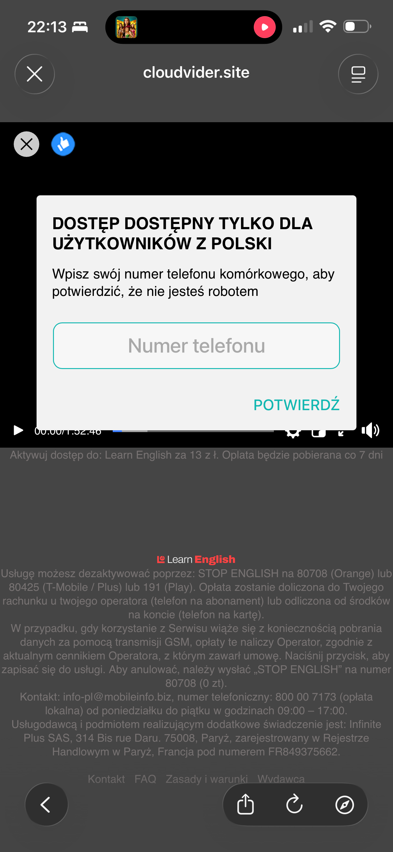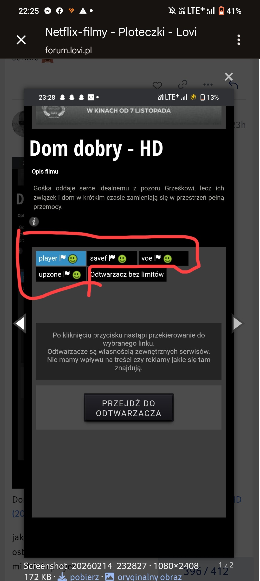 tutaj na telefonie też odpaliła obejrzałam do końca