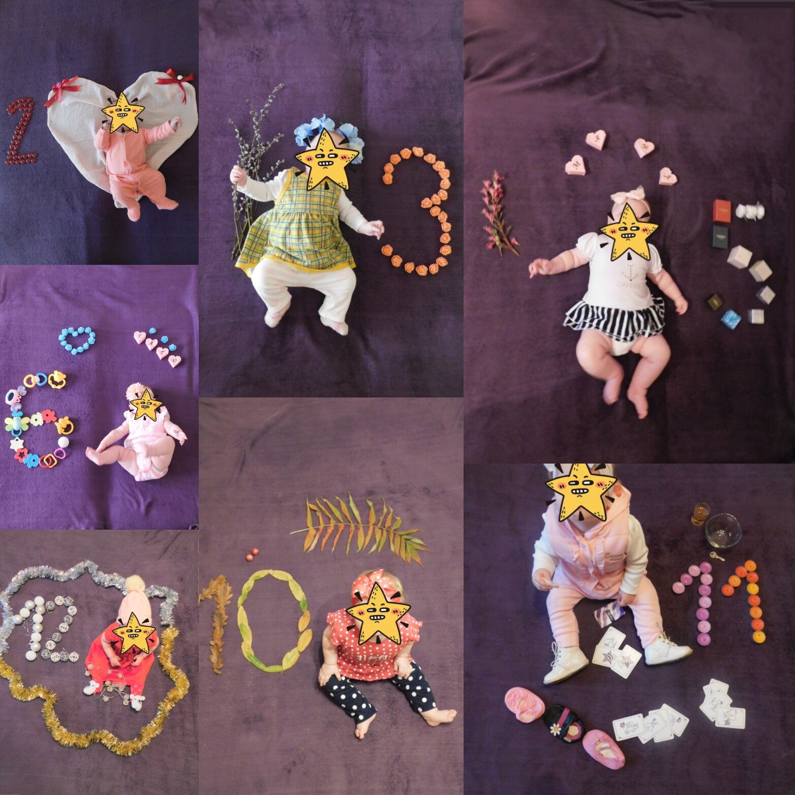 Suzanne fajny pomysł z tymi naklejkami/kartonikami, ale z braku czasu korzystam z gotowców ;) jestem zadowolona w sumie bo na każdym zdjęciu wyglądają tak samo. Mam już plan na te zdjęcia z każdego miesiąca. Po ukończeniu roczku zrobimy kolaż, uważam że to świetna pamiątka dla dziecka, rodziców czy dziadków.