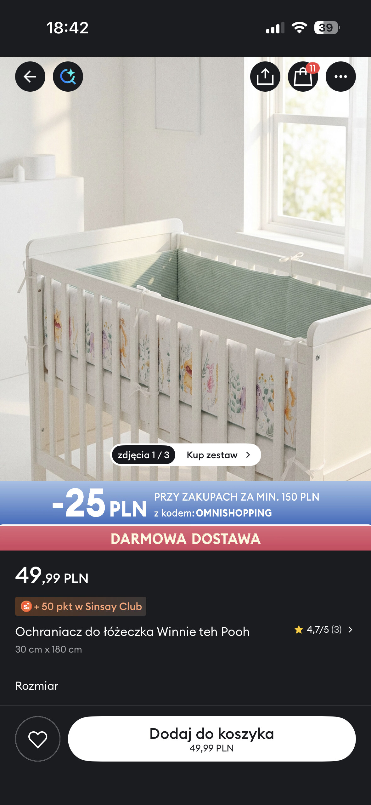 Dziś przeglądałam aplikację Sinsay i jest ochraniacz do łóżeczka o długości 180cm (na połowę łóżeczka) w Kubusia Puchatka