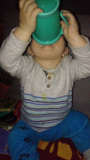 Czasami pije z niego, ale jego miłość do butelki Lovi Medical nadal przeważa nad zainteresowaniem kolorowym kubeczkiem:)