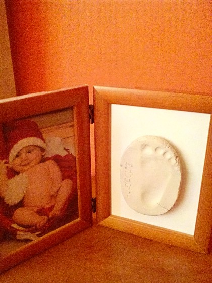 Tez mam taki odcisk bobasa, stopkę mamy, jak mały miał jakieś trzy tygodnie.