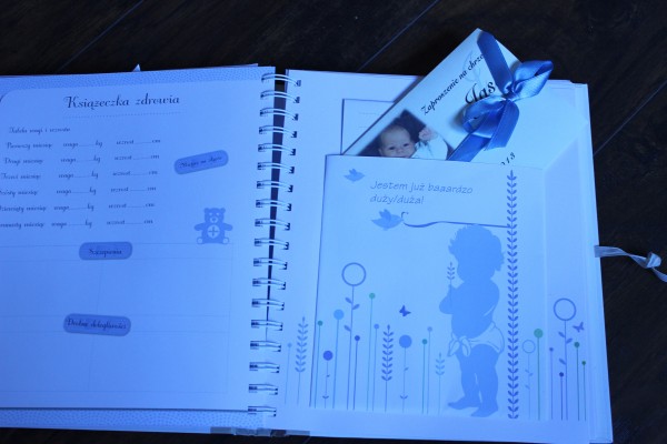 My mamy odcisk stópki i rączki z 5 dnia życia Jasia, i oczywiście zostaliśmy obdarowani 2 albumami od znajomych, i powiem że staram się je prowadzić sumiennie ale nie zawsze znajdę czas. Fotka pierwszego albumu, jest super taka ręczna robota z zakładkami, złotymi myślami rodziców i ulubionymi zdjęciami. Dostaliśmy go na chrzciny , ten drugi taki zwykły ale tez staram się robić tam zapiski, jest tez drzewo genealogiczne które wspólnie wypełniliśmy a ile było przy tym wspomnień z dzieciństwa i ile opowiadań. Tylko takie albumy są przeważnie do roczku , ale ja mam zamiar taką kronikę prowadzić do 18 roku życia.