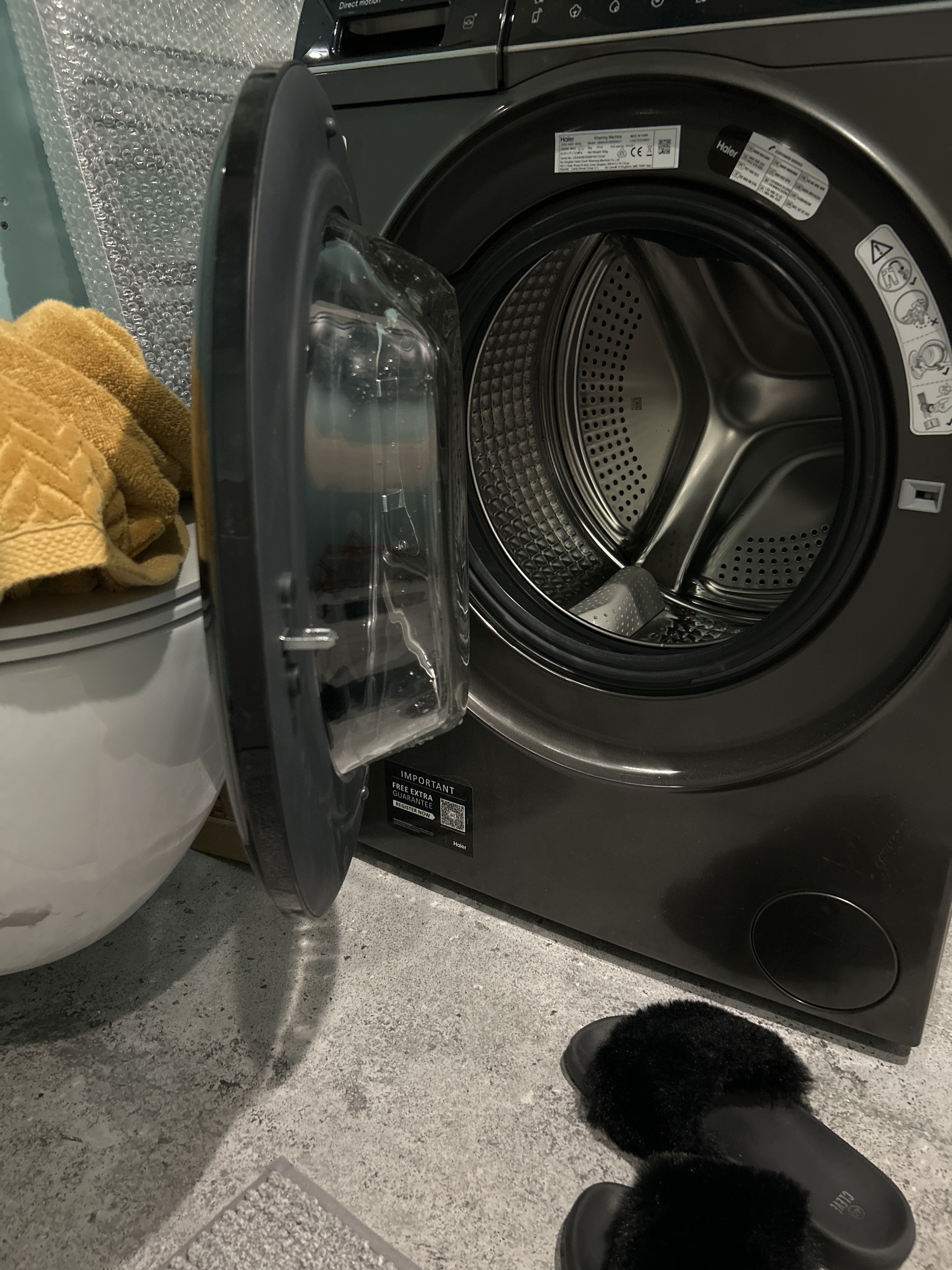 Jak się wprowadziliśmy to się okazało, że okna są mało szczelne i trochę nam tu wiało, największy problem jest taki, że kupiliśmy trochę za duża pralkę…. To niestety faktycznie problematyczne, bo nie mogę otworzyć drzwi w kącie 90 stopni ![]()