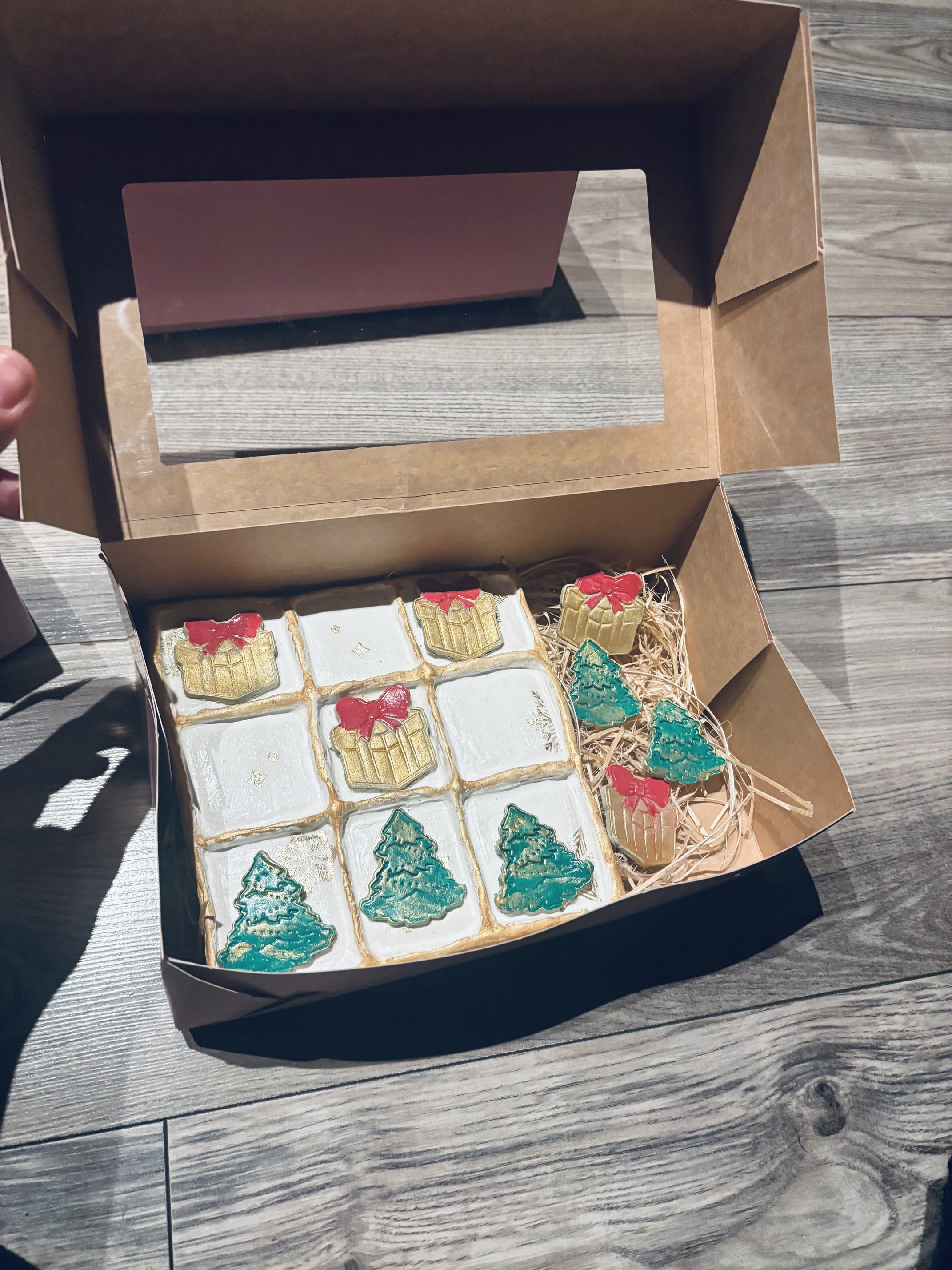 Świąteczne dekoracje – małe stroiki, świeczniki, szyszki ubrane w brokat, mini-choinki z patyczków lub sznurka.