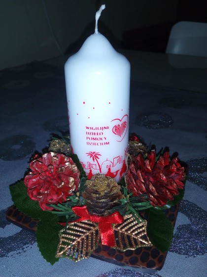 A ja kupiłam wczoraj w Kościele świece z Caritasu, przyozdobiłam taką osłonką specjalną i mini stroik na stół już gotowy