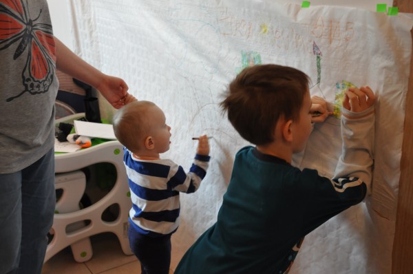 jutro zrobię taki synkowi i przekonam się czy jemu się spodoba. Póki co to u mnie synek bardzo lubi malować na ścianie na której zawiesiłam papierową ceratę. Kilka razy w ciągu dnia podchodzi i rysuje ![]()
