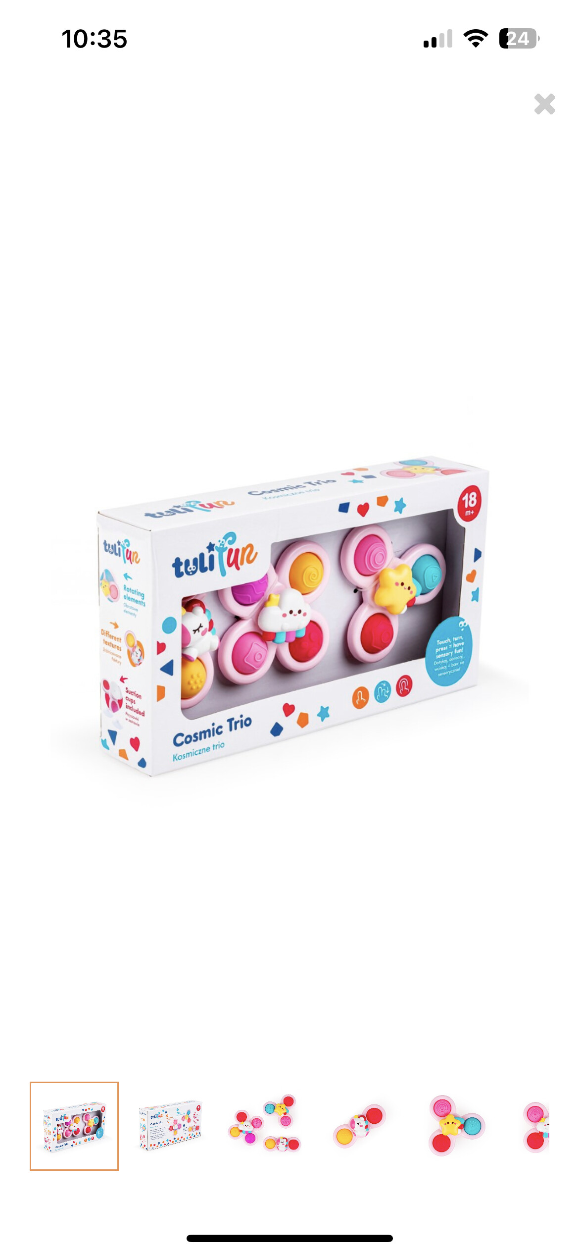 Kostkę sensoryczną mamy i pluszową i takiego słonika od Tulifun, którym właśnie może kręcić itp. Lustro, mamy w pokoju szafę z lustrem i fakt tam zabawa jest najlepsza, ale niestety pod ciągłą kontrolą, bo córka przy niej wstaje, a jak oprze się o drzwi to mogą się odsunąć. Potrzebuje czegoś co też ją zajmie, jak sprzątam, kiedy z nią jestem, ale też skupiam uwagę i na opiece i na czymś innym ![]()